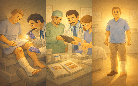 From early-stage ulcers to advanced pre-amputation cases, we provide structured medical and surgical management aiming to preserve limb function and prevent complications.